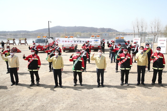 이날 산불방지 업무협약이 끝나고 이재준 고양시장을 비롯한 4개시장은 최전선에서 산불방지를 위해 힘쓰는 고양시 소속 산불전문예방진화대를 만나 격려했다.