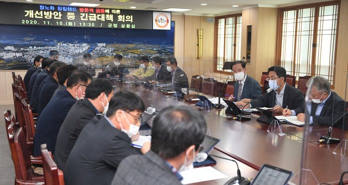 ▲교통체증 해소를 위한 주차장 추가 확보, 불법 주차 단속, 셔틀버스 운영 개선 등의 교통대책 마련 ▲방문객을 대상으로 한 불법영업 행위와 바가지 물가 점검을 위해 식품접객업 지도관리 ▲주차장 및 힐링랜드 내 화장실 확보와 쓰레기 무단투기 근절을 위한 환경관리 대책 ▲방문객 발열체크, 마스크 미착용 과태료 부과 등 코로나19 대책 ▲Y자형 출렁다리 음악회 개최 등 힐링랜드 내 문화공연 지원 ▲농·특산물 홍보 및 판매 ▲홍보 책자 비치 및 홍보 영상 제작 ▲항노화힐링랜드 담당 신설 ▲가조 골프장과 연계한 여행패키지 상품 개발 등 항노화힐링랜드 활성화 방안 ▲항노화힐링랜드 장기계획 수립 등의 대책을 마련했다.