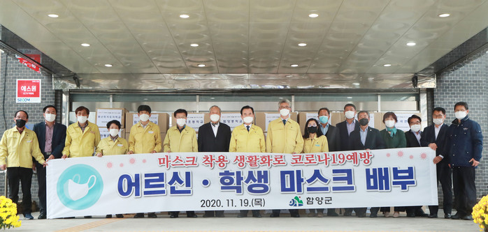 경남 함양군(서춘수 군수)은 19일 오전 집단생활로 코로나19 감염 위험이 높은 학생 및 어르신 1만6,600여명에게 KF-94 마스크 8만2,600여매를 긴급 배부했다.