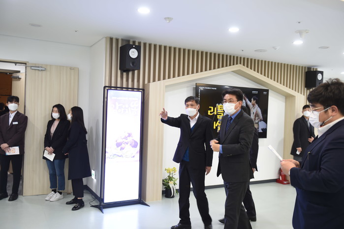 오승록 서울 노원구청장은 최근 아이들의 눈높이에 맞춘 어린이 전용극장으로 리모델링한 '노원어린이극장' 개관식에 참석했다. 사진은 개관식에서 오승록 구청장(오른쪽에서 두 번째)과 내빈들이 시설을 둘러보고 있는 모습. (사진제공=노원구청)