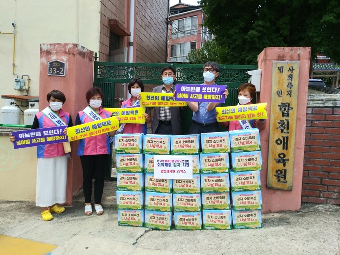 이번 행사는 한국생활개선경상남도연합회에서 코로나19로 소비가 급감하여 판매에 어려움을 겪고 있는 감자를 구매, 취약계층에게 공급하여 소비 촉진 및 이웃 사랑을 실천하기 위하여 추진하게 됐다. 군에서는 감자 소비량이 많을 것으로 예상되는 젊은 층이 거주하는 시설인 합천읍 합천애육원과 청덕면 평화마을 사랑의 집에 각 감자 25박스를 박숙자 회장, 백해경 사무국장, 농업유통과 이동렬 과장이 함께 전달했다.