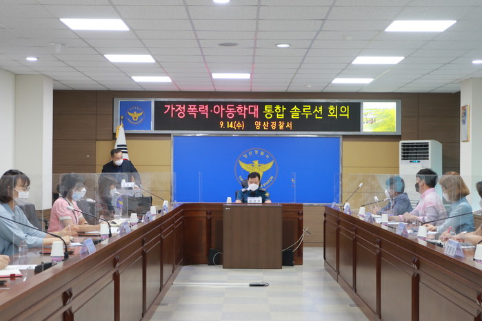 양산경찰서(서장 정성학)에서는 지난 14일 화요일 양산시청,중독관리통합지원센터, 아동보호전문기관 등 5개 유관기관이 참석한 가운데 위기가정에 대한 통합솔루션 회의를 실시하였다.