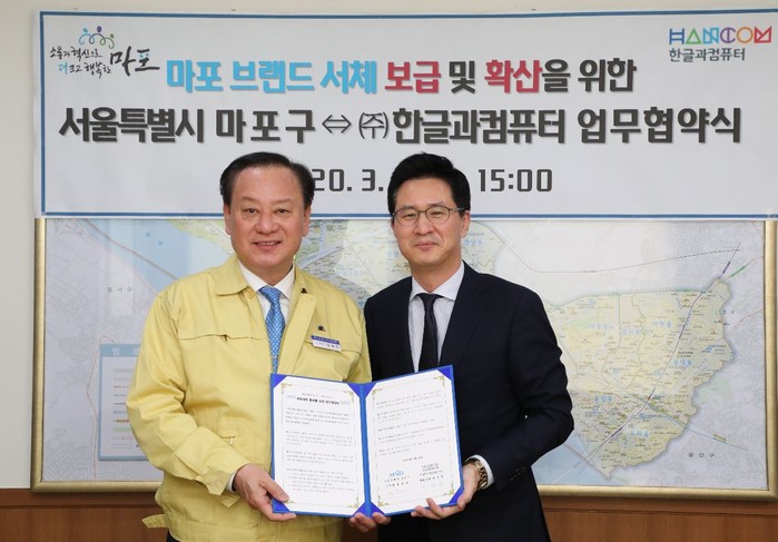[시민일보 = 홍덕표 기자] 서울 마포구(구청장 유동균)는 최근 '마포 브랜드 서체'의 보급 및 확산을 위해 (주)한글과컴퓨터와 업무협약을 체결했다고 9일 밝혔다.