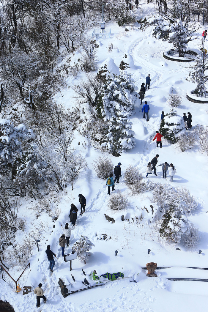 2일 오전 용평리조트 발왕산 스카이워크를 찾은 관광객들이 밤새 내린 눈이 연출한 설경을 즐기고 있다.