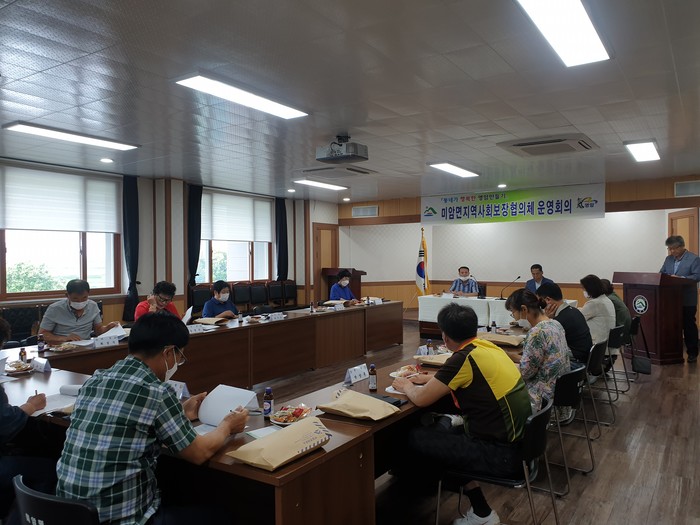 전남 영암군 미암면 지역사회보장협의체는 28일 미암면사무소 회의실에서 제2차 정기회의를 열었다. 이번 회의에서는 신규임원을 선출하고, 하반기에 추진할 특화사업에 대한 지원대상과 운영방법에 대한 세부사항을 논의했다. 사진은 정기회의를 진행하고 있는 모습. (사진제공=영암군청)