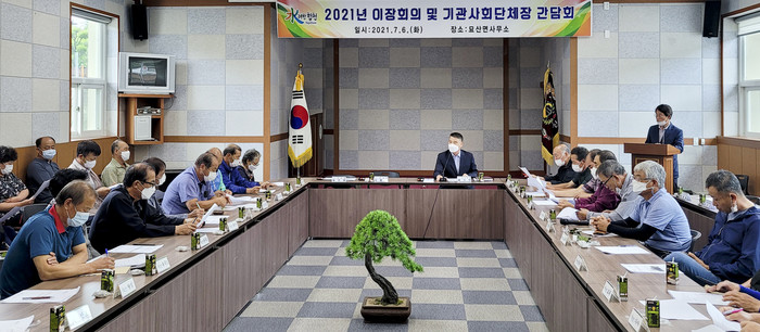 또한 이장 및 기관사회단체장 간담회에서는 소내 전·출입자 인사를 시작으로 읍·면정 보고회 건의사항 처리상황과 2021년 상반기 주요업무 추진 현황, 추진중인 관내 현안사업 등이 보고되었다.