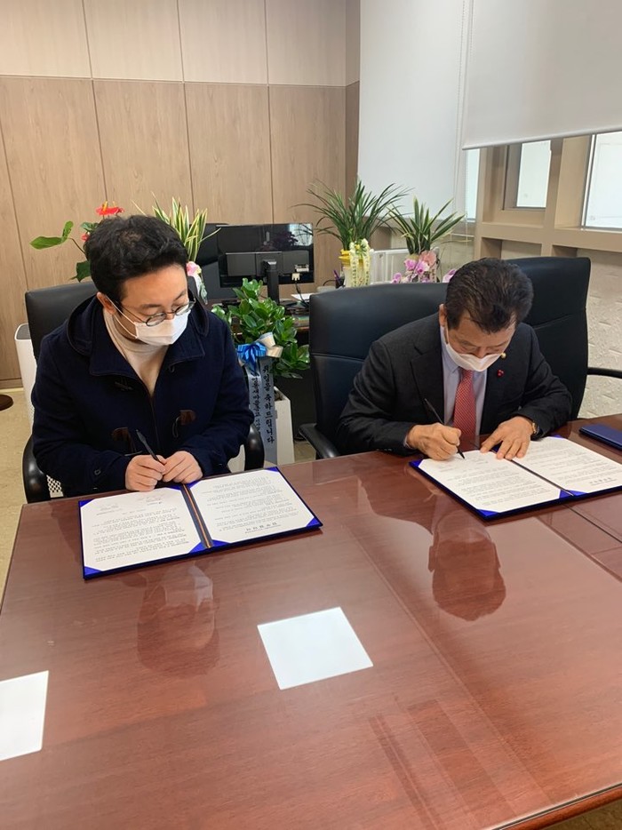 서울 강남복지재단은 최근 저소득층 무상의료 지원을 위해 청담동에 위치한 오가나피부과와 나눔의료협약을 체결했다. 사진은 이날 협약식에서 관계자들이 서명을 하고 있는 모습. (사진제공=강남구청)