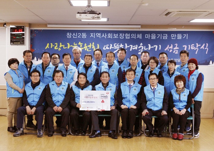 서울 종로구 창신제2동이 최근 동주민센터 3층 강당에서 ‘사랑나눔후원회’와 ‘따뜻한 겨울나기 성금 기탁식’을 진행했다. 사진은 성금을 기탁하는 사랑나눔후원회의 모습. (사진제공=종로구청)