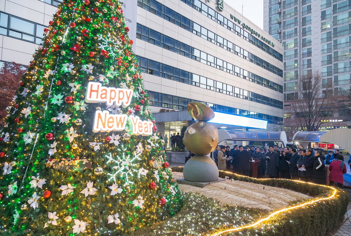 서울 강서구는 새해가 다가옴에 따라 구민들에게 행복과 희망의 메시지를 전달하기 위해 11일 구청 앞 광장에 크리스마스 트리와 조명을 설치하고 점등식을 개최했다. 사진은 설치된 트리에 조명이 환하게 켜진 모습. (사진제공=강서구청)