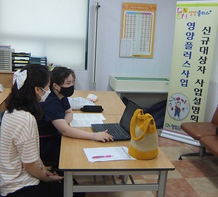 | ▲ 영양플러스 사업 신규대상자 사업설명을 하고있는 영암군 관계자 / 영암군 제공 |