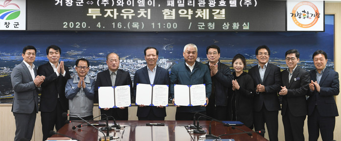 거창군은 16일 군청 상황실에서 거창일반산업단지 및 가조온천 관광지 내 투자자 2개사와 투자금액 135억 원, 고용인원 70여 명 규모의 투자유치협약(MOU)을 체결했다고 밝혔다.