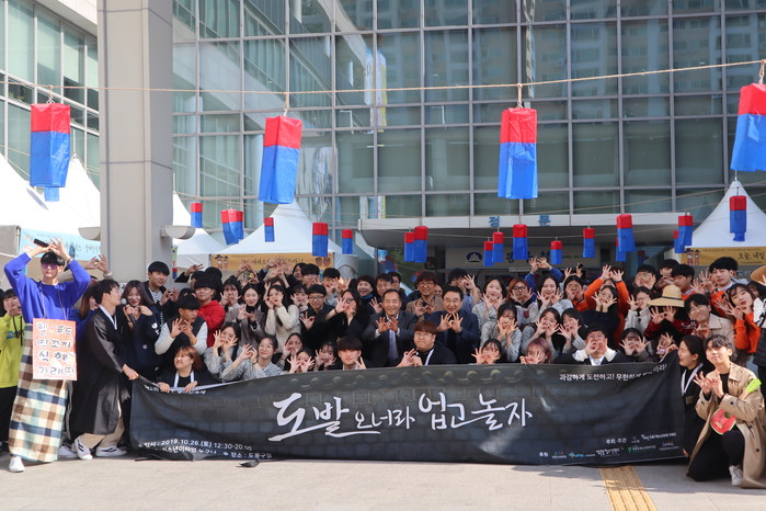 서울 도봉구는 최근 구청 일대에서 구와 청소년문화기획단 청연(청소년들의 연결고리)이 주최·주관하고, 청소년 기관이 후원하는 제5회 도봉구 청소년 축제 ‘도발’ (과감하게 도전하고 무한하게 발전하라!)을 개최했다. 사진은 기념촬영을 하는 모습. (사진제공=도봉구청)