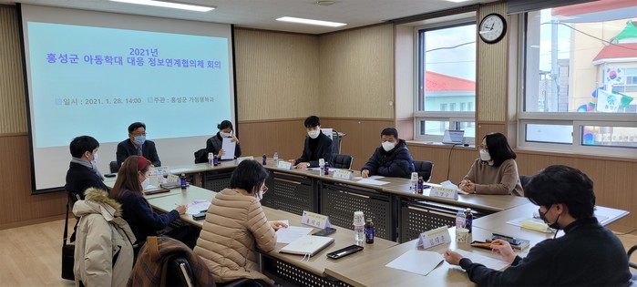 충남 홍성군이 지역 유관기관과 함께 학대 아동을 조기에 발견하고 보호체계를 강화하기 위한 정보연계협의체를 구성하고 운영에 나섰다. 사진은 최근 정보연계협의체 첫 회의를 열고 아동학대 대응방안 등을 논의하고 있는 모습. (사진제공=홍성군청)