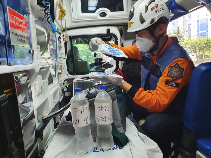 119폭염구급대는 29개 구급대, 216명의 구급대원이 구급차에 얼음 조끼ㆍ팩, 생리식염수, 주사세트 등 9종의 폭염 환자 대응장비를 갖추고 폭염 환자 발생 시 신속하고 전문적으로 대응한다.