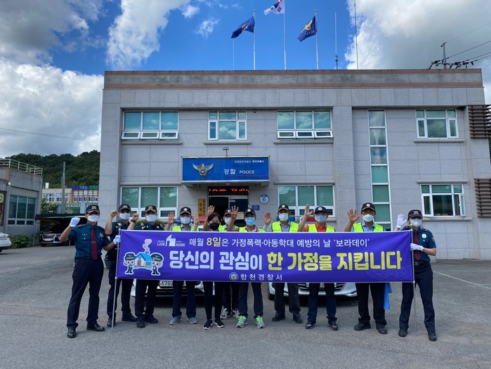 ’21. 9. 8.(수) 합천경찰서 여성청소년계와 합천가정행복상담센터는 초계면 일대에서 가정폭력 · 아동학대 근절 보라데이 캠페인을 진행했다.