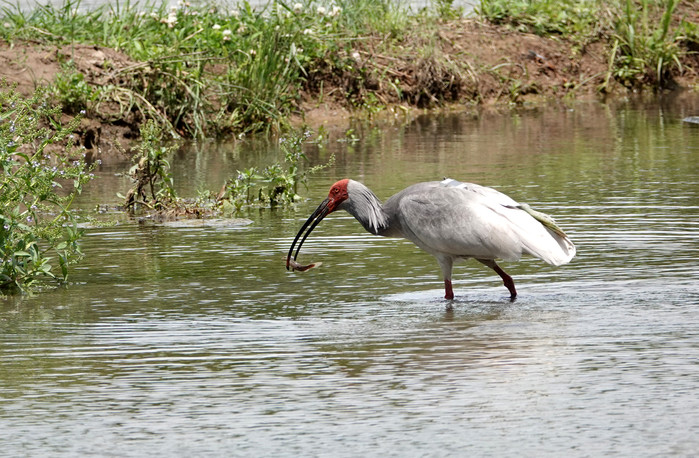 | ▲ 위치추적기를 부착한 따오기가 먹이활동을 하고 있다 |