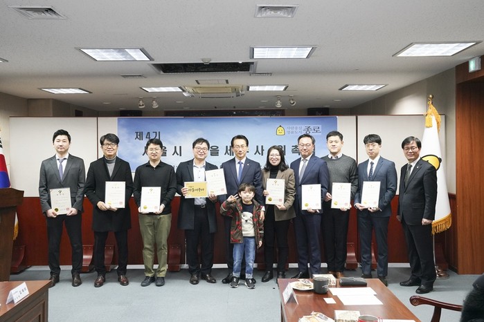 서울 종로구가 최근 마을(동) 단위로 지정된 세무사들이 무료로 세무상담과 권리구제를 지원하는 ‘제4기 서울시 마을세무사 위촉식’을 개최하고 체계적이고 전문적인 세무관련 서비스 제공으로 주민 편의를 높이기 위해 힘쓴다. 사진은 위촉식 후 기념촬영을 하고 있는 김영종 구청장과 관계자들의 모습. (사진제공=종로구청)