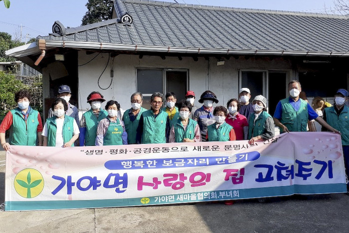 합천군 가야면 새마을협의회(회장 배영효), 새마을부녀회(회장 정미숙)는 관내 저소득 독거노인 2가구를 선정하여 지난 12일 관내 어려운 이웃들을 위한 ‘사랑의 집 고쳐주기’ 봉사활동을 실시했다.