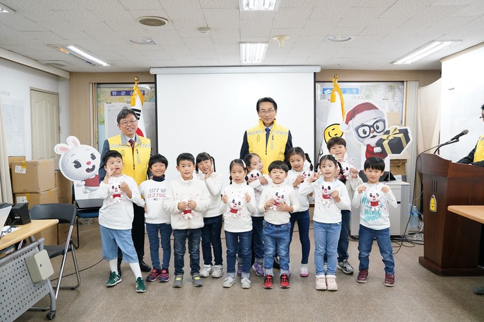 서울 종로구는 최근 구청 본관 지하합동상황실에서 제설종합대책 상황실 개소식을 개최했다. 제설종합대책 상황실은 오는 2020년 3월15일까지 24시간 운영된다. 사진은 개소식에 참석한 김영종 구청장과 명륜어린이집 원아들이 함께 기념촬영을 하는 모습. (사진제공=종로구청)