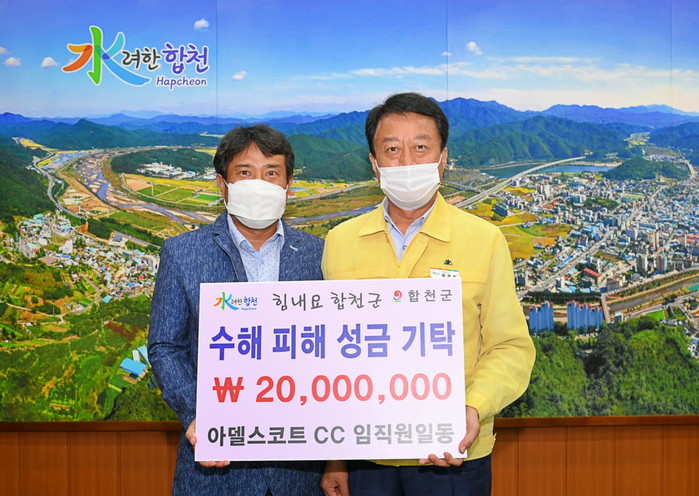 지난 18일 아델스코트CC(대표 이종훈) 임직원 일동은 수해민 지원에 써달라며 합천군(군수 문준희)에 긴급수해복구 성금 2천만원을 기탁했다.