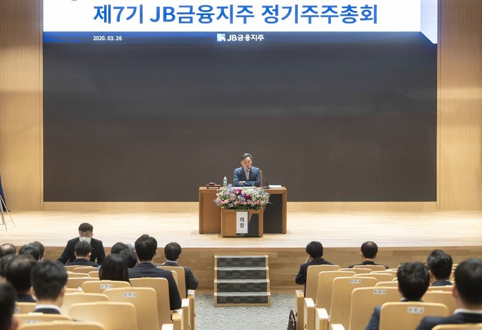 [시민일보 = 고수현 기자] JB금융지주가 26일 본점 3층 대강당에서 제7회 정기 주주총회를 개최했다.