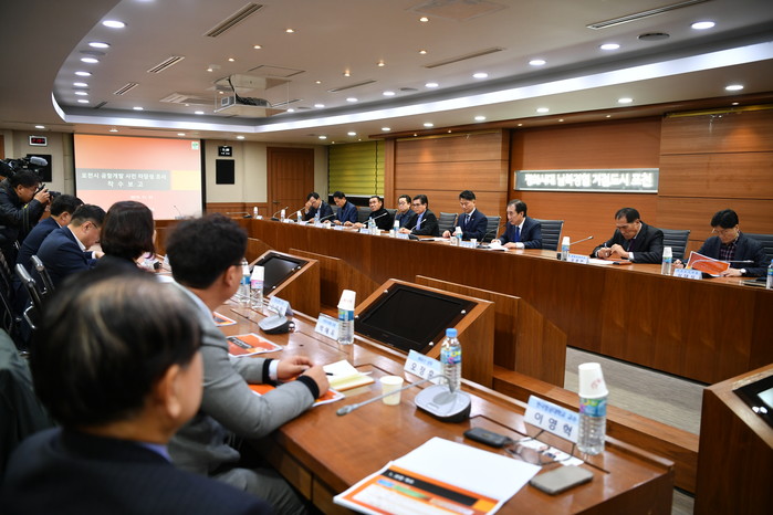 경기 포천시는 경기 북부지역에 소규모 민항기가 취항할 수 있도록 공항을 유치하고자 25일 ‘공항개발 사전 타당성 조사 용역 착수보고회’를 개최했다. 사진은 박윤국 시장 등이 참석한 가운데 착수보고회가 진행되고 있는 모습. (사진제공=포천시청)