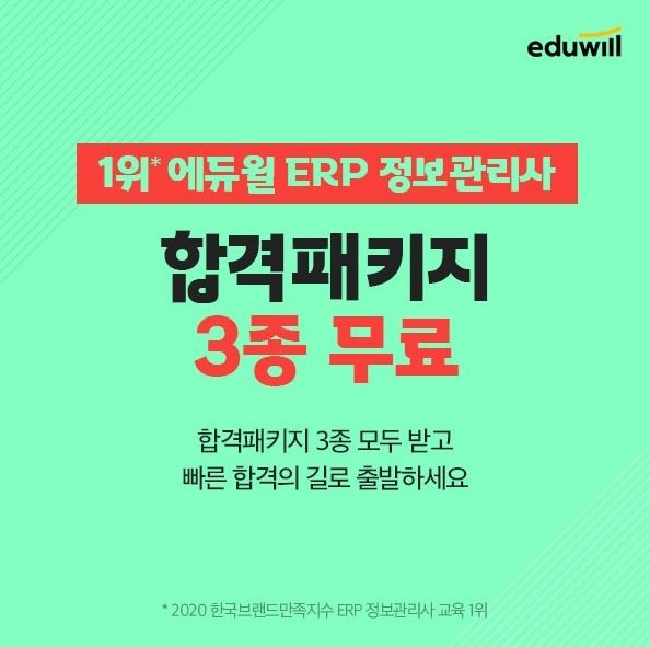 [시민일보 = 여영준 기자] 종합교육기업 에듀윌(대표 박명규) ERP정보관리사가 시험 준비생 대상 ‘합격 패키지’ 무료 이벤트를 진행한다.