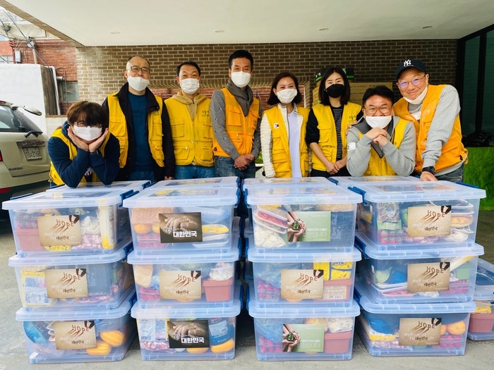 서울 도봉구는 서울광염교회와 함께 코로나19로 침체된 지역경제를 활성화하기 위해 1100만원 상당의 ‘신선식품 꾸러미 키트’를 제작해 지역내 소상공인과 저소득 취약계층 등에 전달했다. 사진은 꾸러미를 제작한 후 기념촬영을 하는 모습. (사진제공=도봉구청)