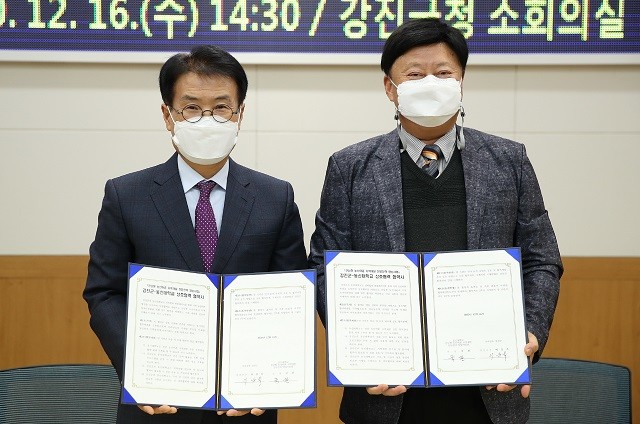 협약식은 이승옥 강진군수와 국찬 양성사업단장이 참석한 가운데 진행됐다. 코로나19 확산 방지를 위해 철저한 사전방역을 실시했으며 참석인원도 최소한으로 했다.