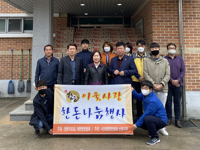 대한한돈협회 산청군지부(지부장 주재용)가 코로나19 장기화로 어려움을 겪는 소외계층과 돼지고기 소비촉진을 돕기 위해 돼지고기 나눔행사를 가졌다.