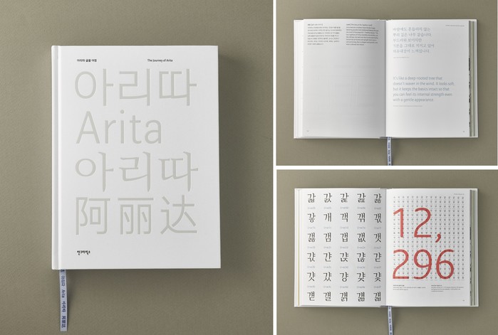 또한 만드는 과정의 기록 사진, ‘아리따’ 서체를 활용한 제품과 도서 등 ‘아리따’ 글꼴에 관련한 모든 것을 담았다.