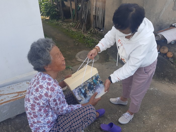 경기 이천시 백사면지역사회보장협의체가 최근 추석 명절을 맞아 코로나19로 더욱 소외될 수 있는 복지사각지대에 있는 취약계층 30가구에 생필품을 전달했다. 사진은 이날 협의체 위원이 대상 가구를 방문해 생필품을 전달하고 있는 모습. (사진제공=이천시청)