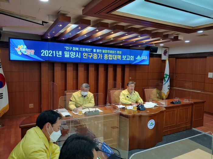 밀양시(시장 박일호)는 22일 시청 소회의실에서 박일호 시장 주재 하에 2021년 밀양시 인구증가 종합대책 보고회를 개최했다고 밝혔다.