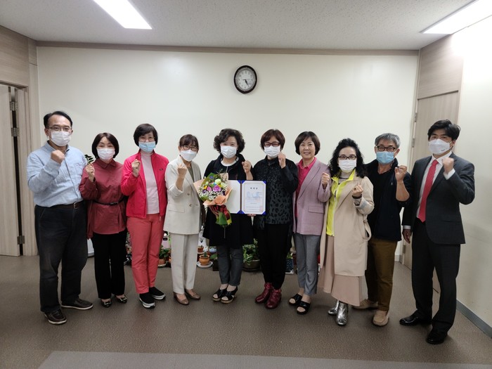 김경숙 국민의힘 안양시의원(사진 중앙)이 지난 8일 안양시의회에서 이승경 경기도 안양시 한궁협회 이승경 회장, 안양시 장애인한궁연맹 박현순 회장 등 안양시 한궁 관계자들과 박정옥·김필여 시의원이 참석한 가운데 안양시 한궁협회 자문위원장에 위촉됐다.