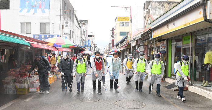 합동방역에 참여한 이정용 시장번영회장은 “그동안에도 시장을 통한 감염은 전혀 없었다. 너도 나도 어렵기 때문에 버티고는 있지만 결국, 군민들이 일상으로 돌아와야 시장도 다시 살아난다. 앞으로도 깨끗한 위생 관리로 안심시장을 만들겠다”고 다짐했다.