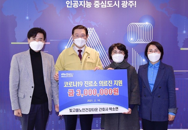 광주시는 박 간호사가 기탁한 지원금으로 방역용 마스크와 핫팩 등을 구입해 편지와 함께 진료소에 전달할 계획이다.