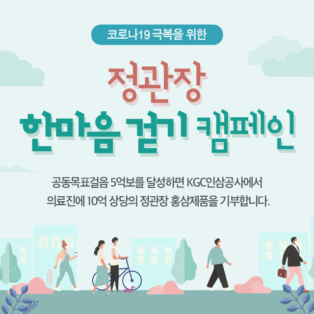 [시민일보 = 고수현 기자] KGC인삼공사가 코로나19의 건강한 극복을 위해 3일부터 오는 21일까지 19일간 '정관장 한마음 걷기 캠페인'을 전개한다.