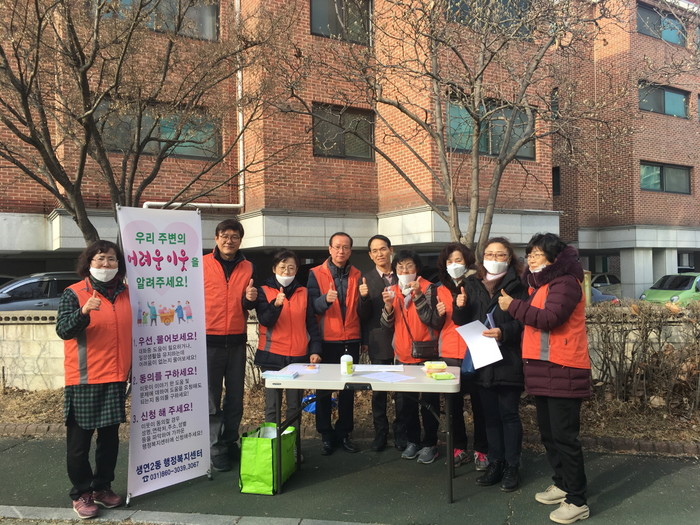 경기 동두천시 생연2동 지역사회보장협의체는 19일 생연2동 7·8통 일대에서, 시민들을 대상으로 복지사각지대 발굴을 위한 맞춤형복지 홍보와 복지상담을 실시했다. 이번 홍보활동에는 생연2동 지역사회보장협의체 위원 10여명이 참석했다. 사진은 참여자들이 기념촬영을 하는 모습. (사진제공=동두천시청)