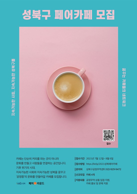 [시민일보 = 홍덕표 기자] 서울 성북구(구청장 이승로)는 지역내 카페를 대상으로 '성북구 페어카페'를 모집한다.