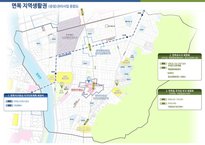 | ▲ 면목지역생활권 중점 관리사업 종합도. |