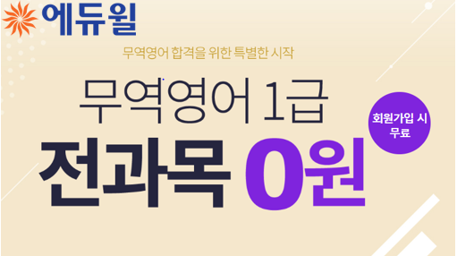 무역영어1급 ‘전과목 0원’ 이벤트에 대한 자세한 내용은 에듀윌 홈페이지를 통해 확인할 수 있다.