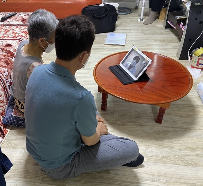 인천 서구 치매안심센터가 의료 사각지대에 놓인 거동이 불편한 노인들을 위해 치매 화상진료실을 운영하고 있다. 화상진료는 치매 전담 간호사가 1차로 가정을 방문해 치매선별검사·진단검사를 진행한 뒤 치매 의심 대상자를 각 가정에서 화상을 진료하는 방식이다. 사진은 최근 한 노인이 화상진료를 받고 있는 모습. (사진제공=서구청)