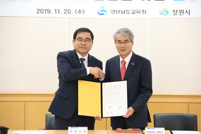 경상남도교육청(교육감 박종훈)과 창원시(시장 허성무)는 20일 창원시청에서 지역 최대 현안인 창원 북면신도시 고교설립 문제해결을 위해 ‘가칭) 북면1고 설립을 위한 업무협약’을 체결했다.