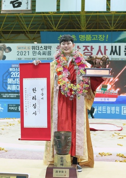 [영암=정찬남 기자] 전남 영암군민속씨름단은 대한씨름협회가 주최하고 해남군씨름협회에서 주관하는 제2차 민속리그 2021 해남장사씨름대회에서 오창록장사가 한라급 왕좌를 차지하는 성과를 거뒀다.