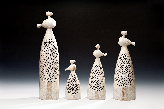 특히, 몸통이 둥글고 목이 가늘어지다가 입부분이 나팔처럼 퍼진 병(甁)을 옆으로 눕혀 오리의 몸통으로 재해석한 작품은 물레성형에 대한 작가의 해학적 접근을 살펴볼 수 있는 작품이다.
