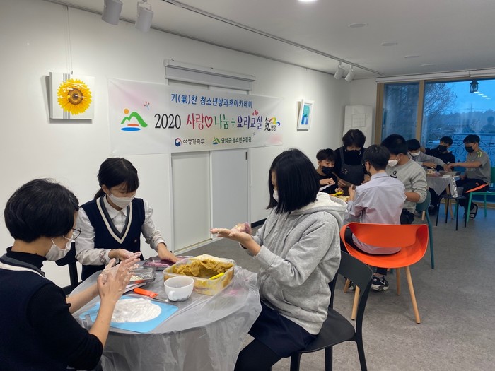 | ▲ 영암군 기찬 청소년방과후 교육아카데미 "2020 사랑 나눔 요리교실" 요양원 간식만들기 봉사 / 사진, 영암군 제공 |
