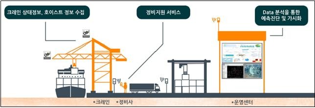 컨소시엄은 크레인 전용 IoT센서를 통해 호이스트, 트롤리, 붐, 모터 등 설비와 핵심부품에서 발생하는 속도, 진동, 온도 등 상태정보를 수집하고, 실시간 감지 및 온라인 진단시스템 구축을 통해 장비의 이상 징후를 사전 예측하고, 장비운전ㆍ결함이력, 예방정비 알림 등 다양한 지원서비스 모델을 개발할 계획이다.