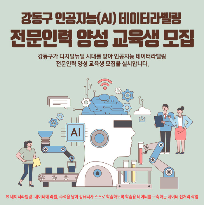 [시민일보 = 이대우 기자] 서울 강동구(구청장 이정훈)가 인공지능(AI) 데이터 라벨링 전문인력 양성교육 2차 수강생 모집을 실시한다.