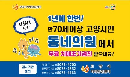고양시는 2019년부터 117개소 동네의원과 업무 협약을 체결하고, 만 70세 이상 고양시민이 무료로 동네의원에서 치매조기검진을 받을 수 있도록 전국 최초로 연 1회 본인 부담금 약 17,500원을 지원하고 있다.