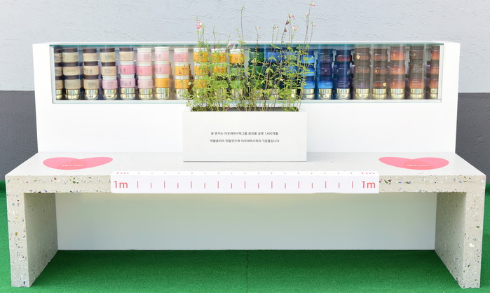 ▲ 화장품 공병을 재활용해 제작한 업사이클링 벤치. (사진제공=아모레퍼시픽) |